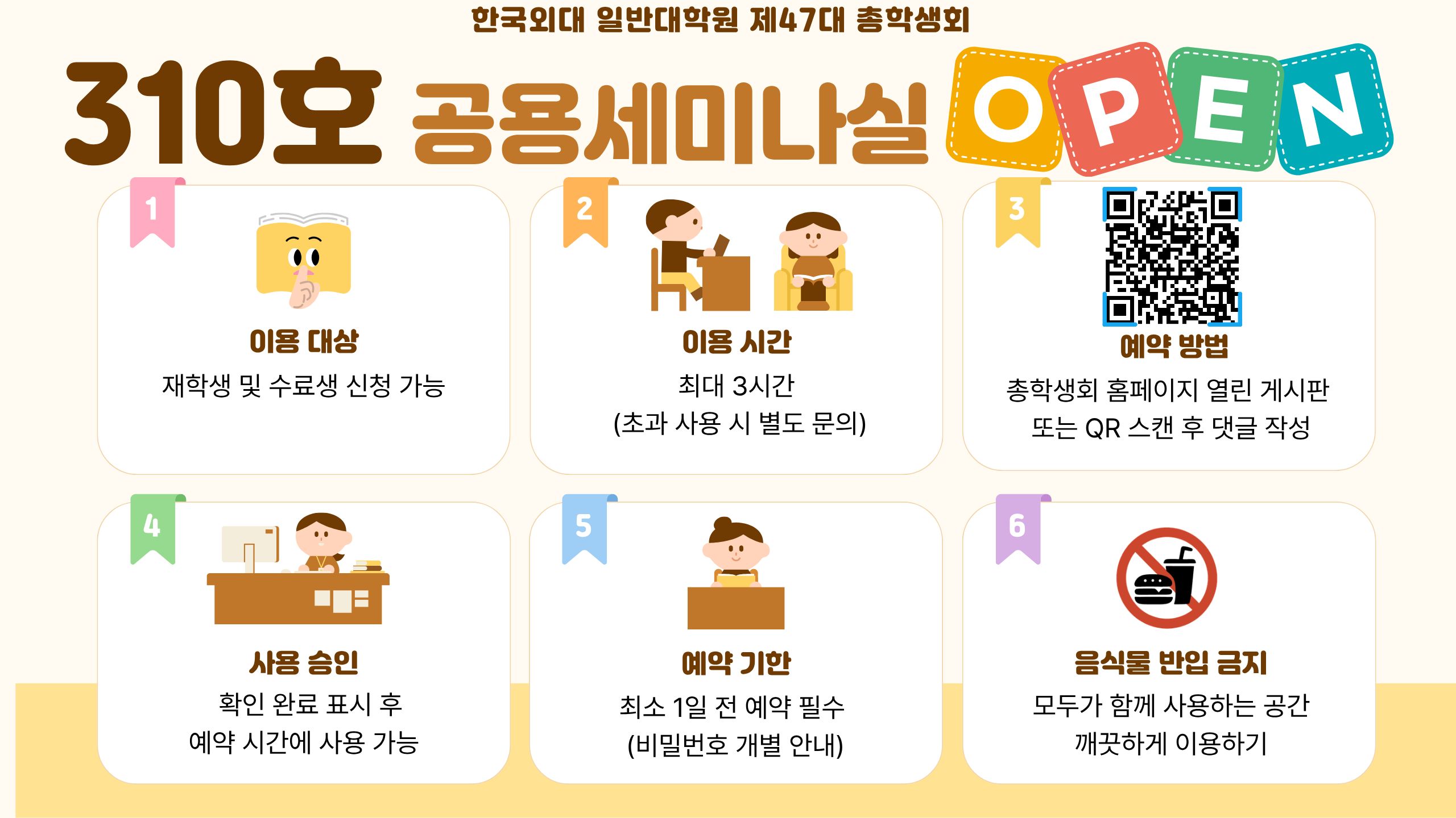 310호 세미나실이 공용 공간으로 오픈될 예정입니다.
