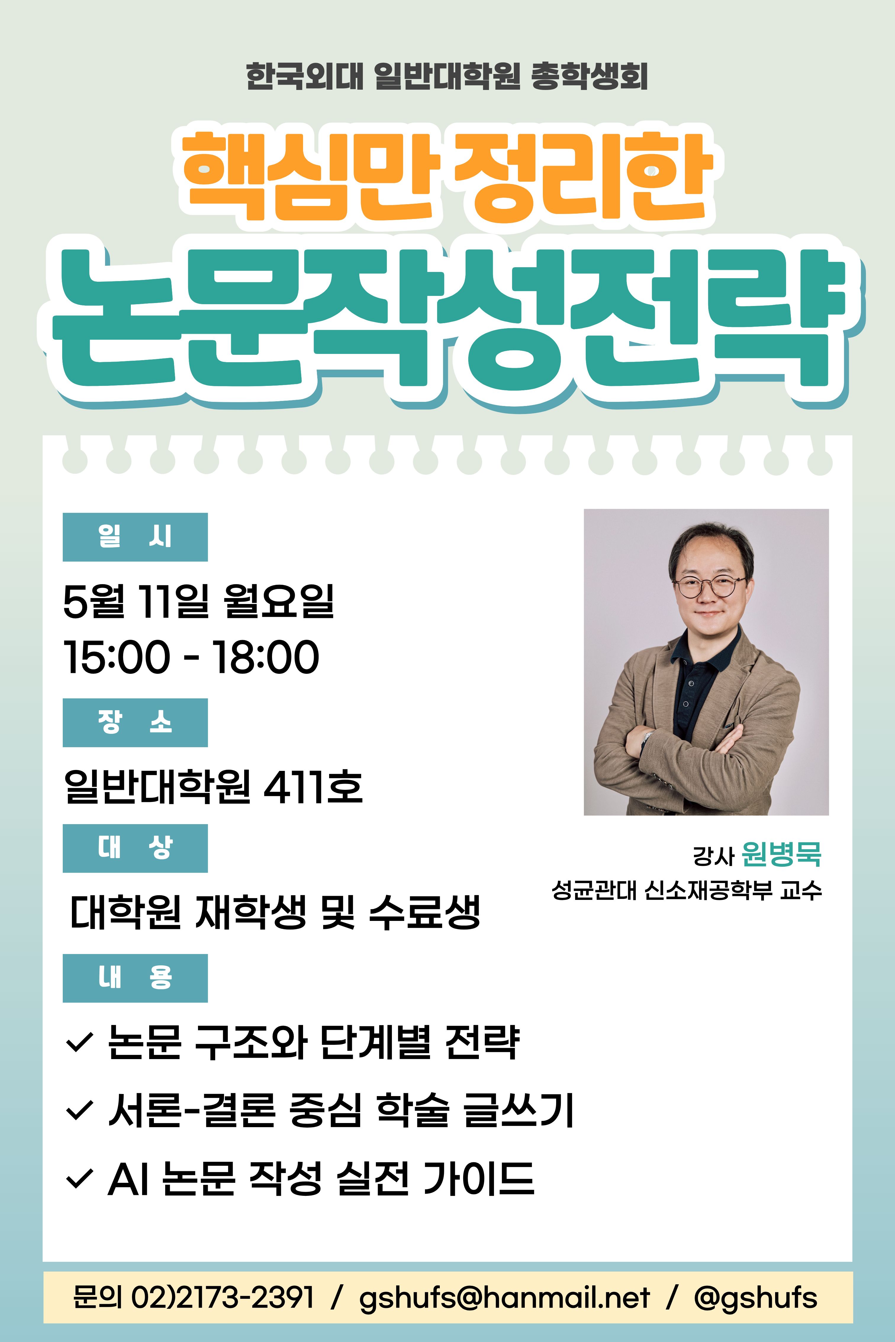 이번 특강은 <핵심만 정리한 논문 작성 전략>을 주제로,