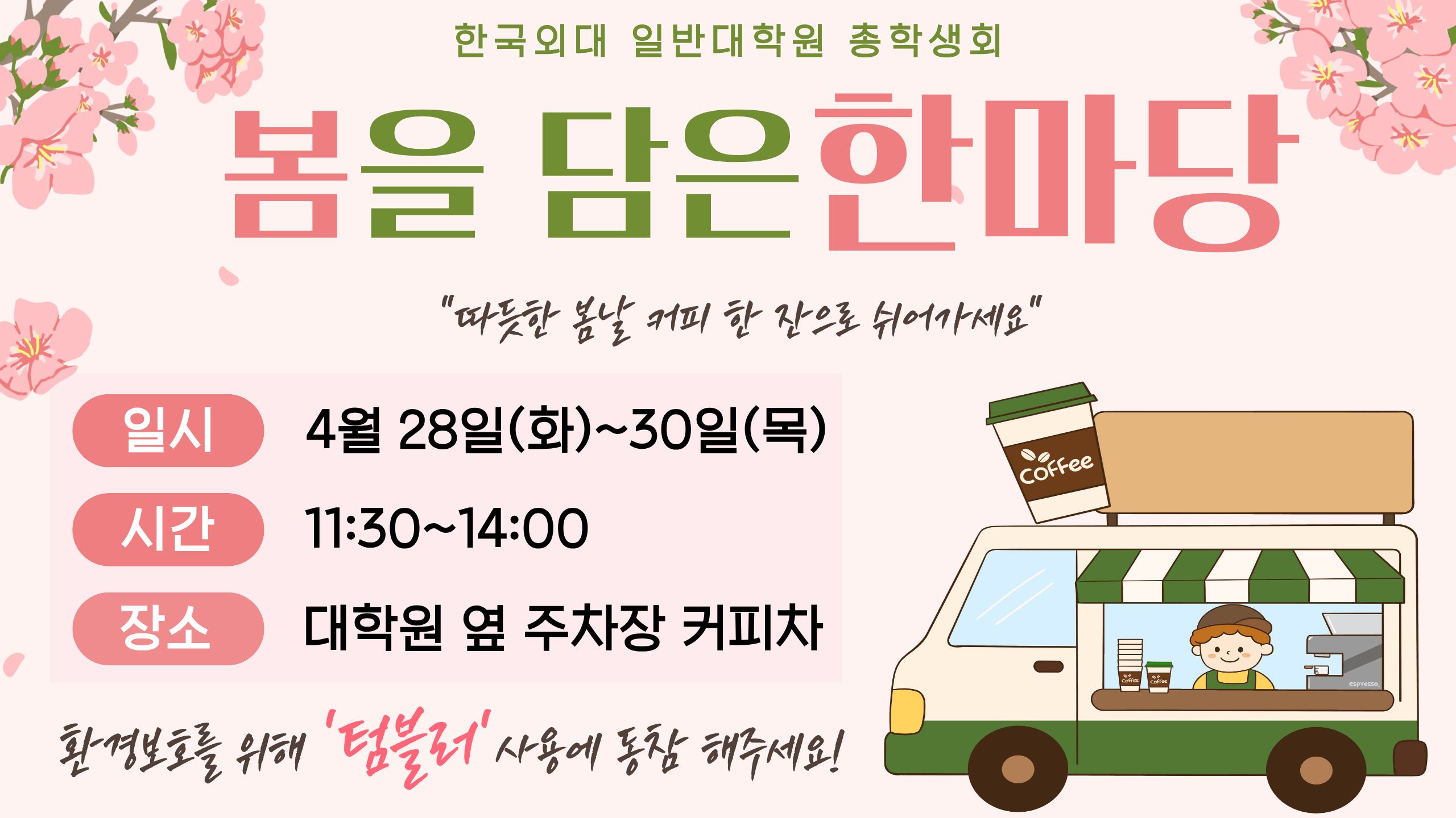 따뜻한 봄날, 지친 일상 속 작은 쉼표가 되어줄 「봄을 담은 한마당」에 원우 여러분을 초대합니다.